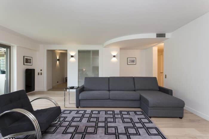 Dans les séjours plus spacieux, il est judicieux de ne pas coller systématiquement les canapés contre le mur. En les plaçant en îlot central, on permet une circulation fluide tout autour, ce qui apporte une impression d’espace.